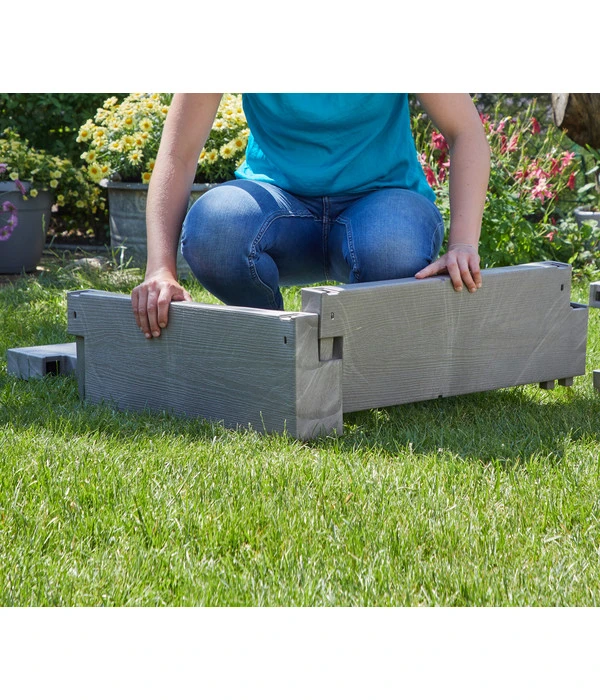 Das Arbeiten im eigenen Garten gehört zu Ihren absoluten Lieblingsbeschäftigungen? Dann ist das Juwel Hochbeet Timber Kombiset die perfekte Ergänzung für Ihren Außenbereich. Dank eines praktischen Stecksystems lässt es sich in wenigen Minuten spielend leicht aufbauen. Die verwendeten Bauelemente bestehen aus 100 % recycelbarem Kunststoff und sind in ansprechender Holzoptik gehalten. So genießen Sie sämtliche Vorteile eines Kunststoffbeetes: Das Streichen und Pflegen von verrottenden oder splitternden Stellen gehört der Vergangenheit an.