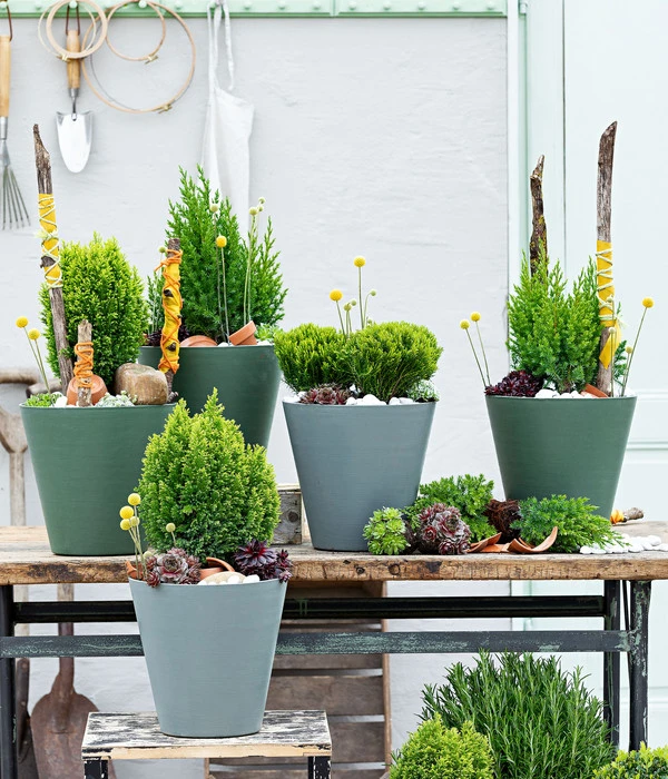 Grüne Kugeln schmücken Beete, Balkone und Gräber