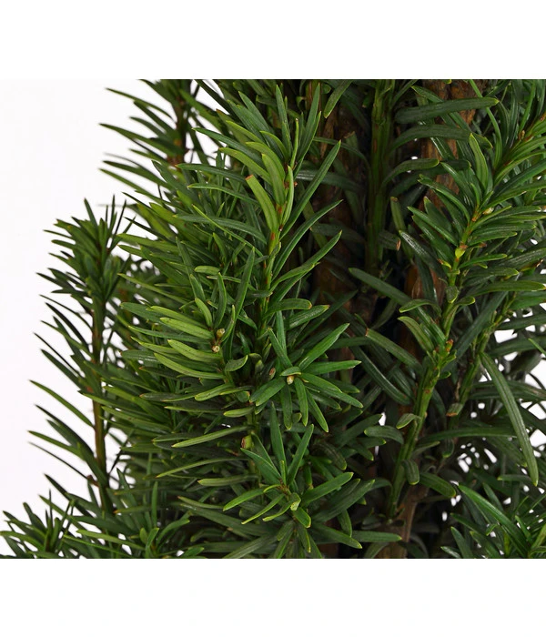 Mit ihrem straff aufrechten, säulenförmigen Wuchs macht die Säulen-Eibe ‚Fastigiata‘ ihrem Namen alle Ehre. Erst im Alter gehen die Äste und Zweige leicht auseinander und verleihen der Eibe eine Vasenform. Die immergrünen Nadeln des Baumes sind von einer tief- bis fast schwarzgrünen Farbe und eher weich und biegsam. Sie bilden einen schönem Kontrast zu den leuchtend roten, fleischigen Samenmänteln, die sich nach der eher unscheinbaren Blüte im Sommer um die heranreifenden Samen bilden. Durch die Färbung locken die Eiben Vögel an, die die Samen samt Ummantelung fressen und dadurch zur Verbreitung der Pflanzen beitragen.