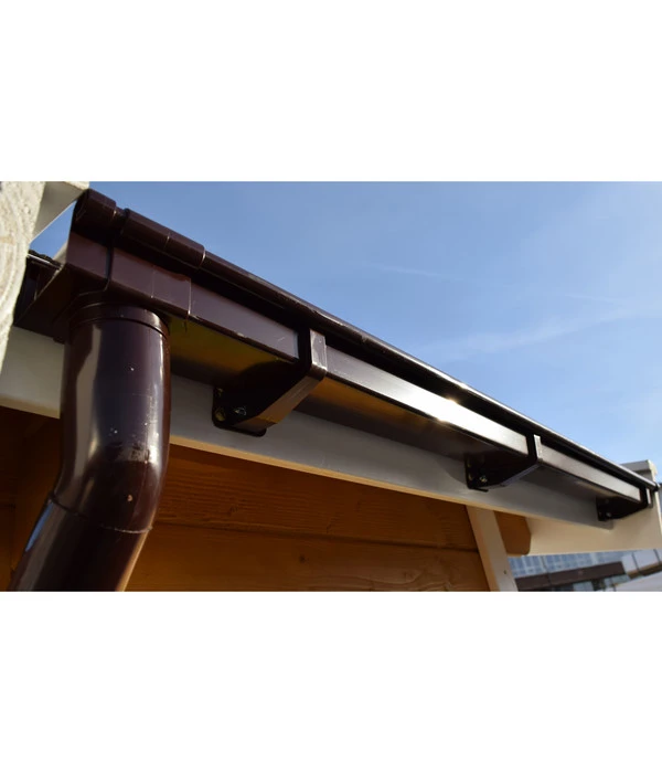 Der Regenwassergewinnung dient das Kastenrinnen-Set für Gartenhäuser.