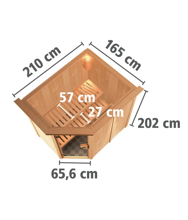 Bei der Wolff Finnhaus Innensauna de luxe Helia sind die Wände und das Dach bereits vormontiert und werden mit einem einfachen Steck- und Schraubsystem verbunden. Dadurch wird Ihnen der Aufbau Ihrer Sauna erstaunlich leicht und schnell von der Hand gehen. Wenn Sie gleich noch den passenden Ofen mitbestellen und anschließen lassen, können Sie bald einheizen und die gesunde Hitze in Ihrer eigenen Sauna genießen.