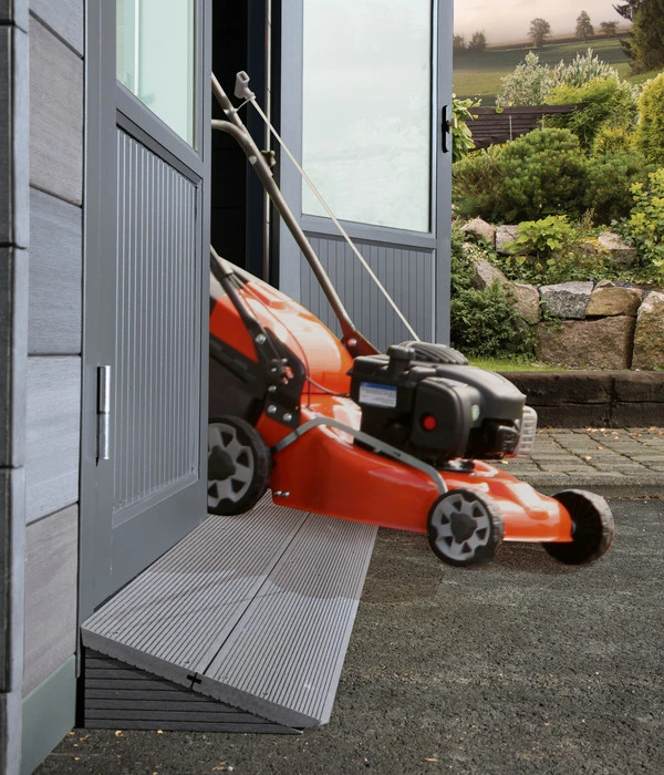 Wenn Sie die Arbeit im Außenbereich lieben und dabei so richtig vom Alltag abschalten können, dann erweist sich die perfekte Ausstattung im Garten als unerlässlich. Wolff Finnhaus präsentiert Ihnen mit der Rampe für die Doppeltür eine hervorragende Möglichkeit, um Ihr Metallhäuschen perfekt zu komplettieren. Das Produkt erleichtert Ihnen diverse Tätigkeiten sofort. Es passt zum Metallhaus Eleganto und garantiert Ihnen, dass Ihre rollenden Maschinen, Geräte und andere Utensilien ganz bequem ein- bzw. ausgeräumt werden können.